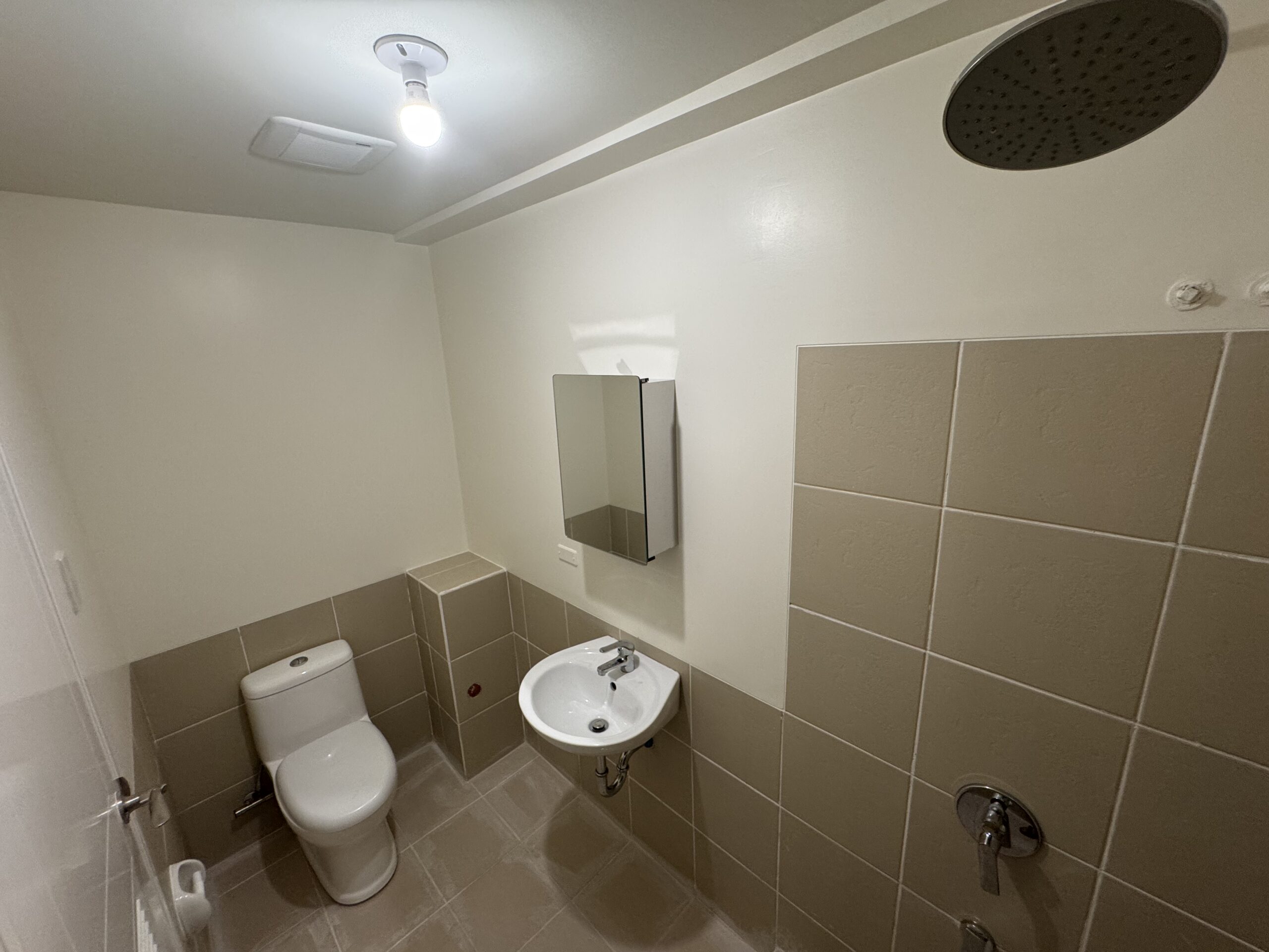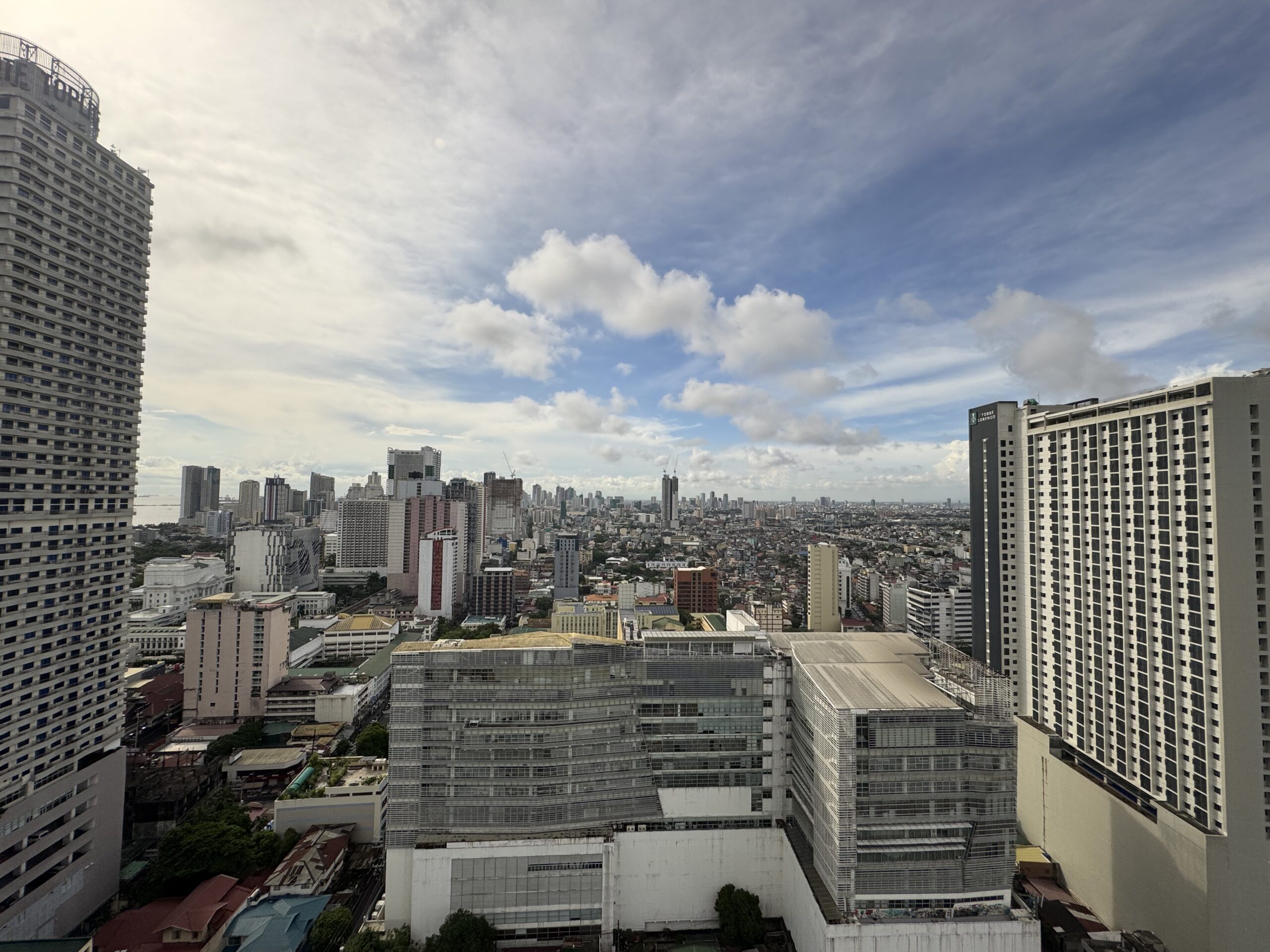 Upon entrance is the kitchen, with granite worktop, dual Hamden hob cooker, sink, and fridge. The shower room has generous storage, mirrors, shower screen and heater. The Dining area has storage below the sofa and above the table. Opposite is a double height wardrobe with built in mirrors and washing machine underneath a pull down desk. The bedroom has bedside table, 43″ TV with stylish floating shelves, and fabulous views overlooking Malate and Intramuros.